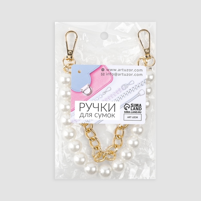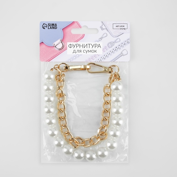 Цепочка для сумки, с жемчугом, d = 14 мм, 2,3 × 16 × 11,5 мм, 30 см, цвет золотой