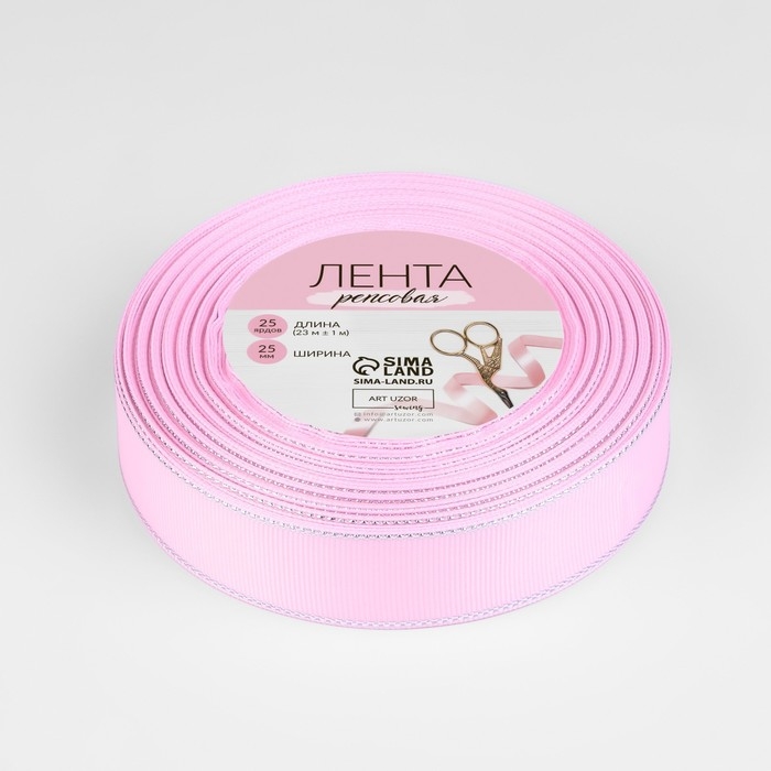 Лента репсовая «Серебряные нити», 25 мм × 23 ± 1 м, цвет светло-розовый №004