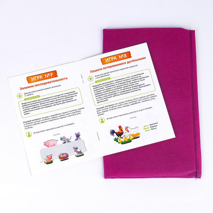 Игровой набор «Весёлая ферма» познакомит ребёнка с окружающим миром и расширит его словарный запас. В комплекте есть методическое пособие, в котором подробно описывается 14 вариантов игр с набором.