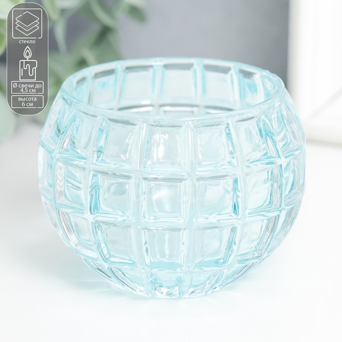 Подсвечник стекло "Бочонок" d-4,5 см голубой 7,5х7,5х6 см
