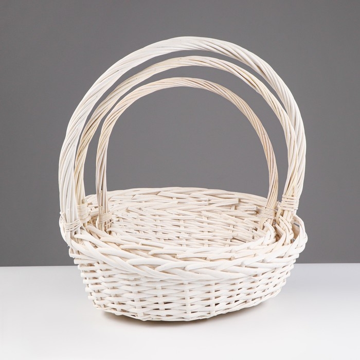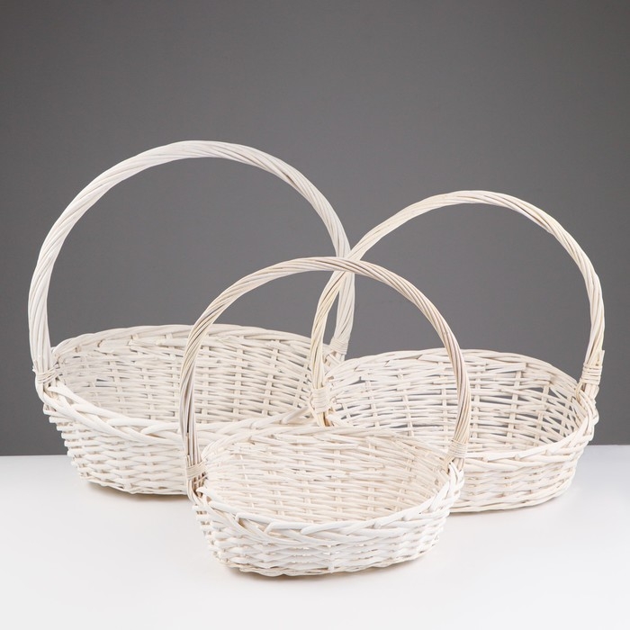 Набор корзин, 44х34х10/18/44см, 38х29х9/16/39см, 32х24х8/14/34см, ива, белый