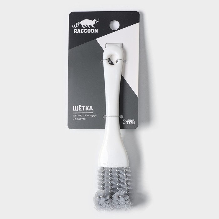 Щётка для чистки посуды и решёток-гриль Raccoon, 17×4 см, цвет белый