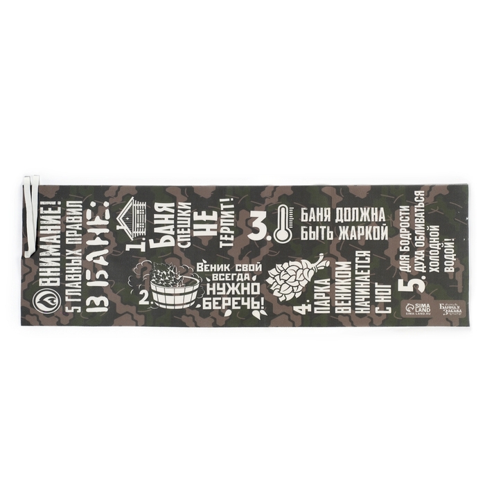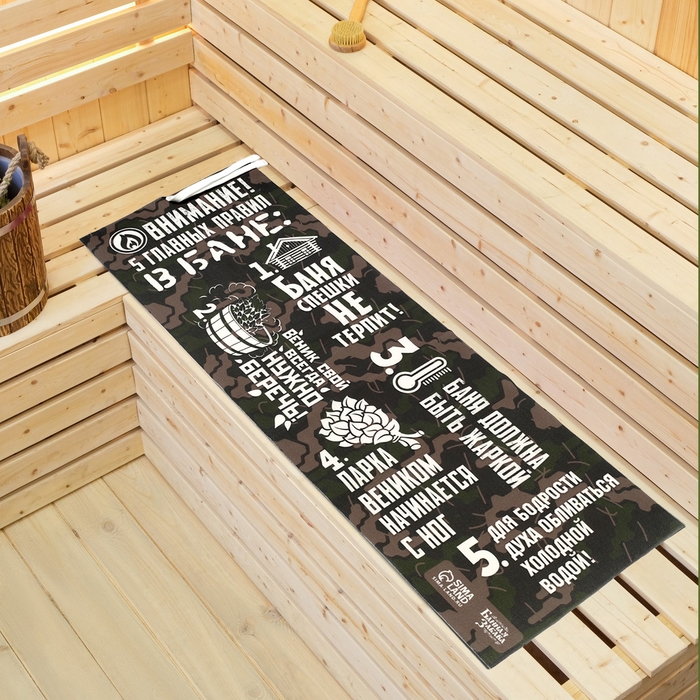 Лежак для бани с принтом "5 главных правил в бане" 150х50 см