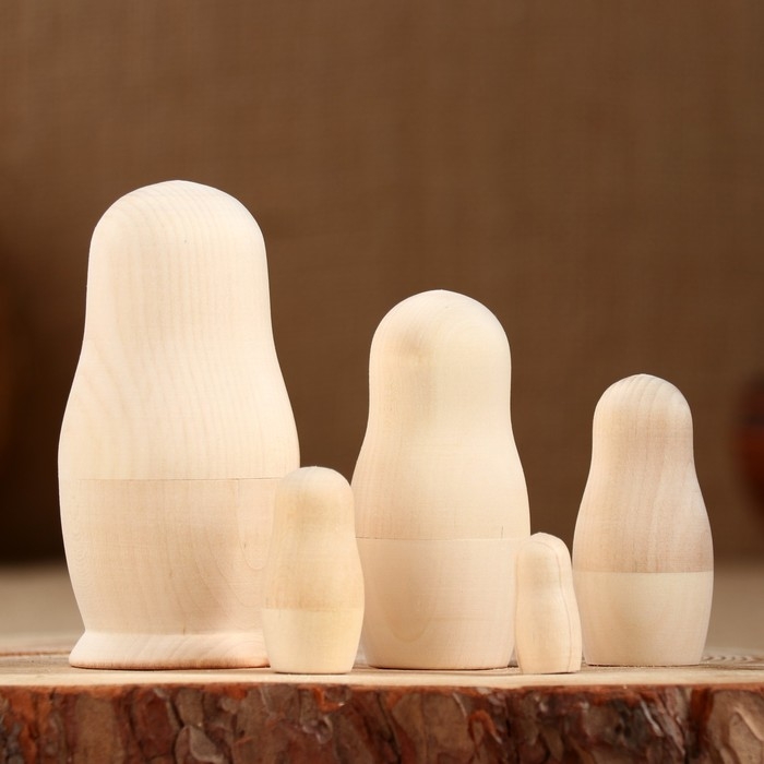 Заготовка для творчества "Матрешка" под роспись, 5-ти кукольная, дерево, 11х5,5х5,5см