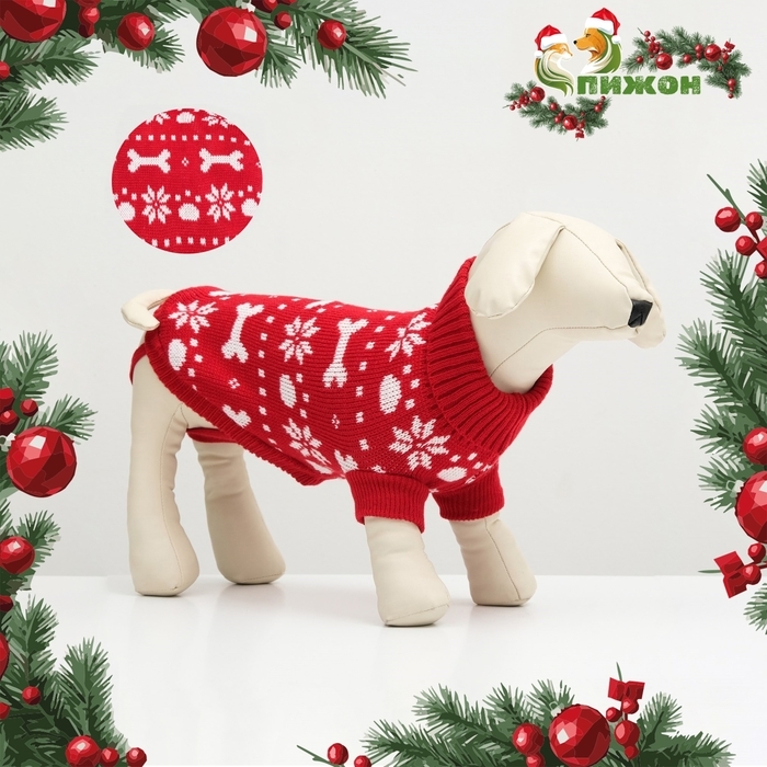 Свитер "Косточки-снежинки" для собак имеет уникальный новогодний дизайн, который придаст вашему питомцу особый вид во время праздников.