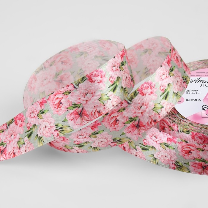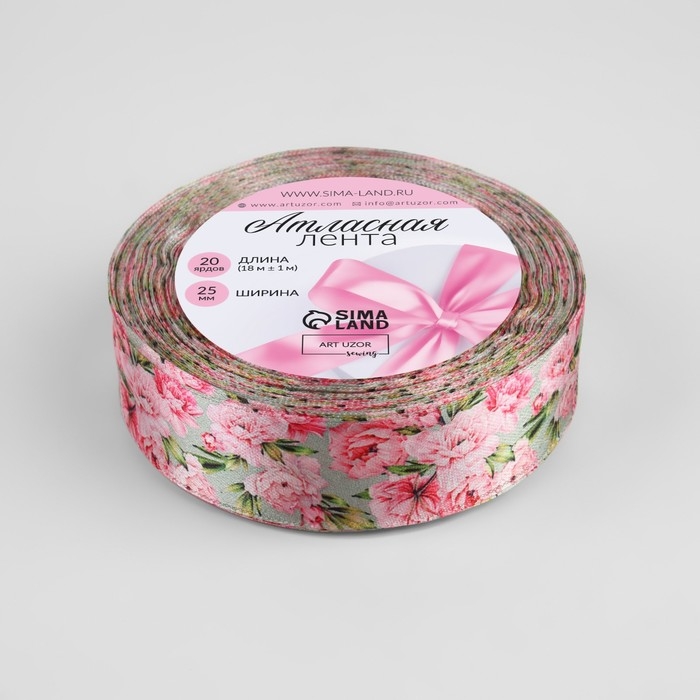 Лента атласная «Пионы», 25 мм × 18 ± 1 м, цвет разноцветный