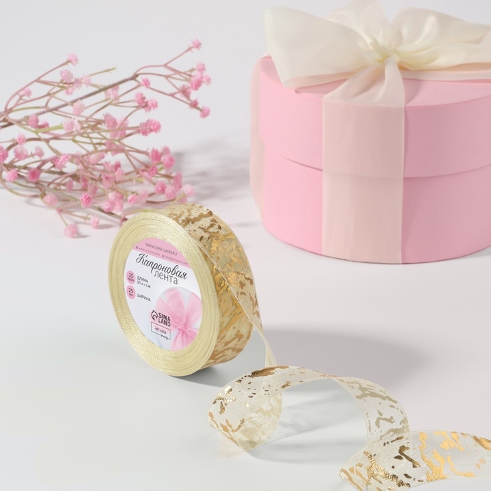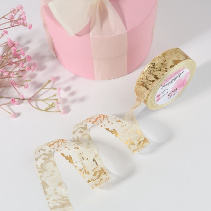 Лента капроновая с тиснением «Мрамор», 25 мм × 23 ± 1 м, цвет слоновая кость/золотой №008