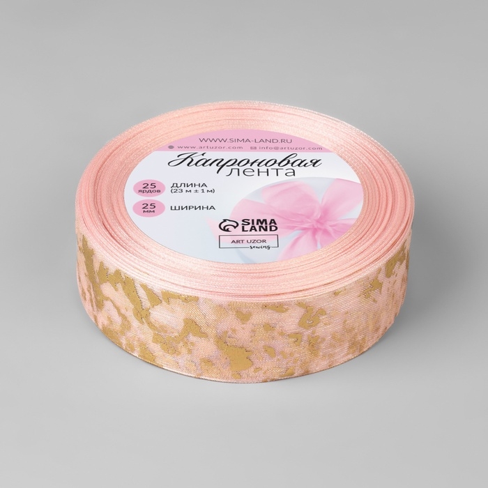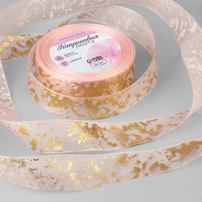 Лента капроновая с тиснением «Мрамор», 25 мм × 23 ± 1 м, цвет розовый/золотой №041
