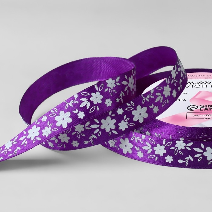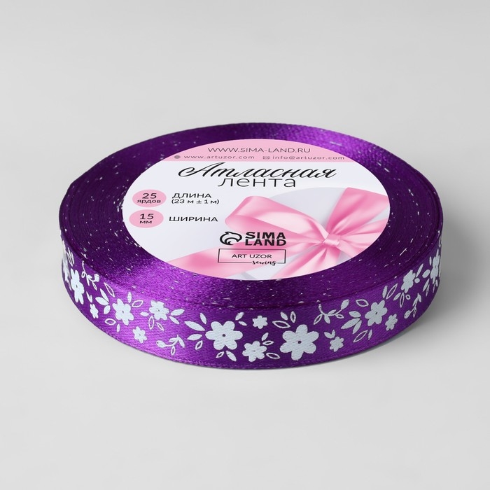 Лента атласная «Цветочки», 15 мм × 23 ± 1 м, цвет фиолетовый №035