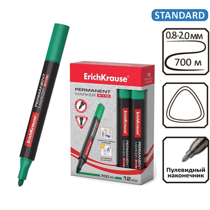 Маркер перманентный ErichKrause P-170, 2.0 мм, чернила на спиртовой основе, зелёный