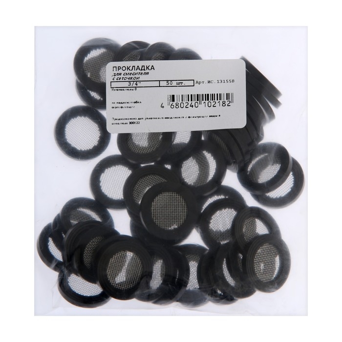 Прокладка резиновая Masterprof ИС.131558, 3/4", для смесителя, с сеточкой, 50 шт.