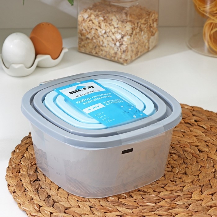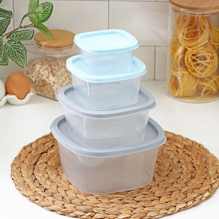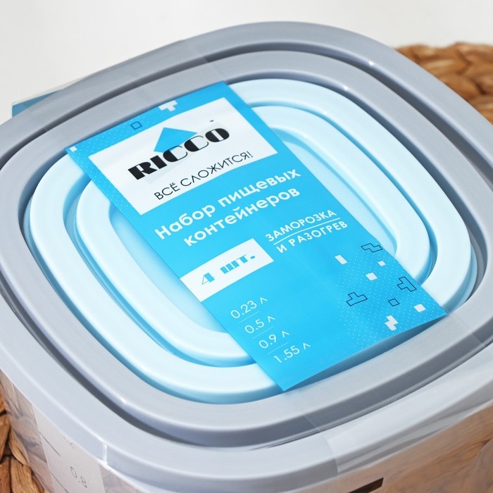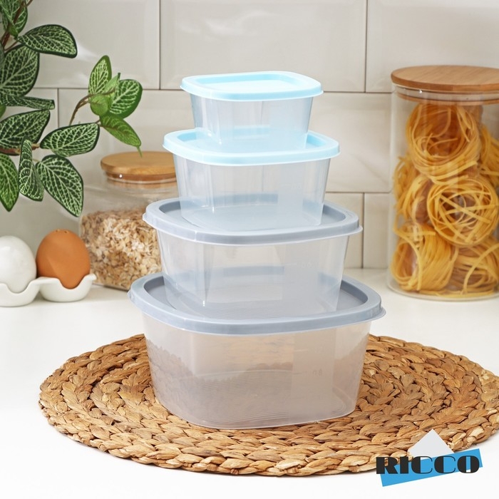 Набор контейнеров пищевых RICCO, 4 шт: 230 мл, 500 мл, 900 мл, 1,55 л, квадрат, цвет ассорти