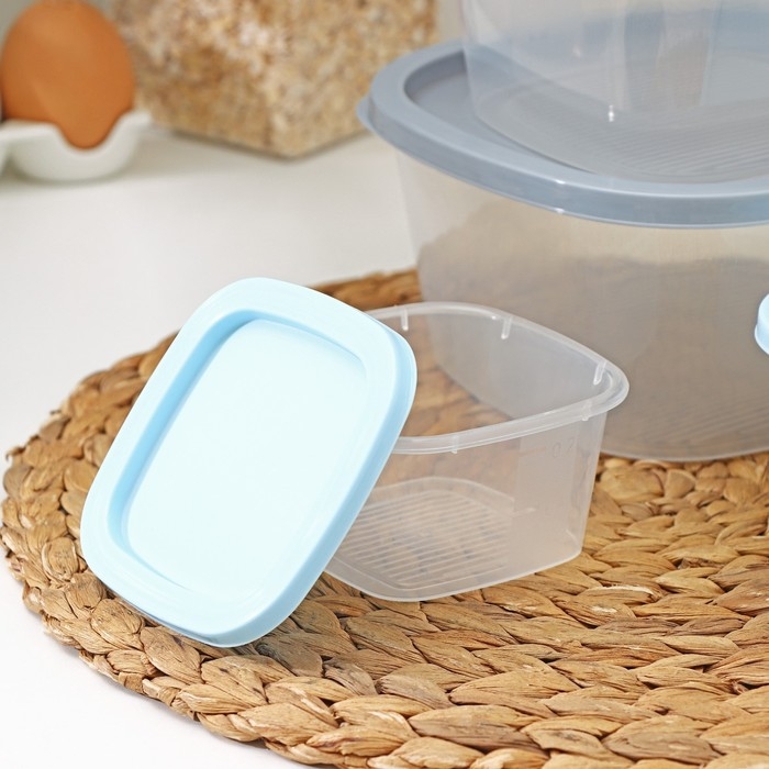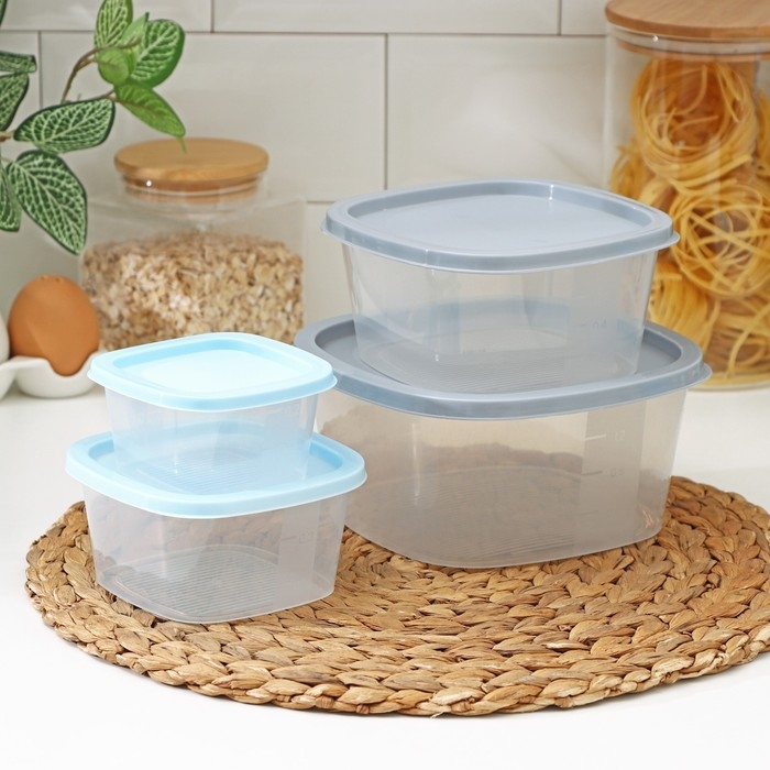 Набор квадратных контейнеров предназначен для хранения, заморозки или транспортировки продуктов. Используйте контейнеры для хранения готовой еды, сыпучих продуктов, конфет, печенья и др. Также вы можете брать еду с собой или использовать её для заморозки продуктов.
