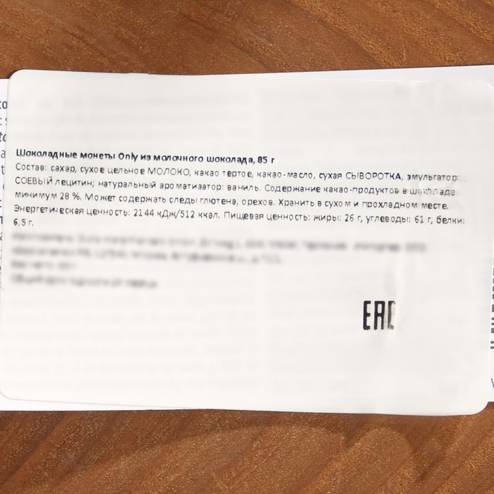 Шоколадные монеты Only из молочного шоколада, 85±5 г