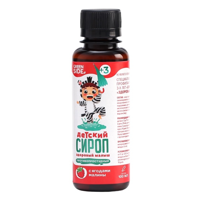 Сироп детский противопростудный «Здоровый малыш» с ягодами малины, пэт, 100 мл