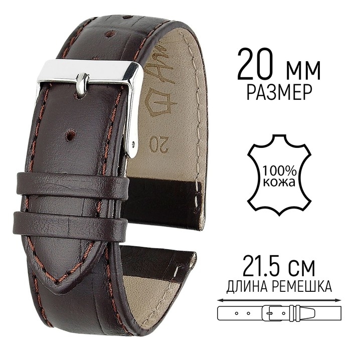 Ремешок для часов, мужской, 20 мм, запряжник 75 мм, горт 115 мм, натуральная кожа