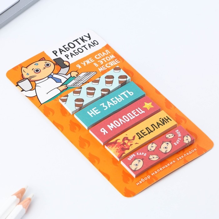 Стикеры-закладки, на подложке "Работку работаю" 5 шт, 30 л/шт