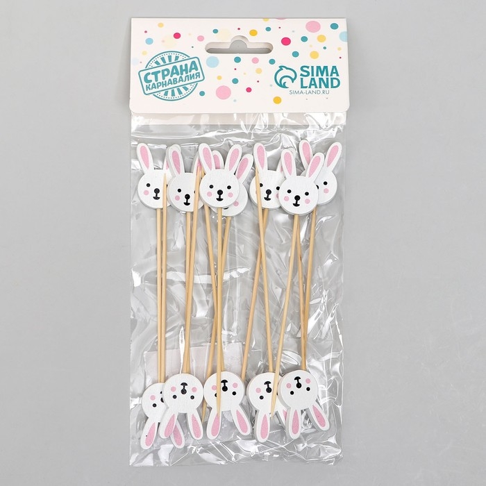 - 12 шпажек длиной 16 см, каждая украшена милыми фигурками зайчиков.
