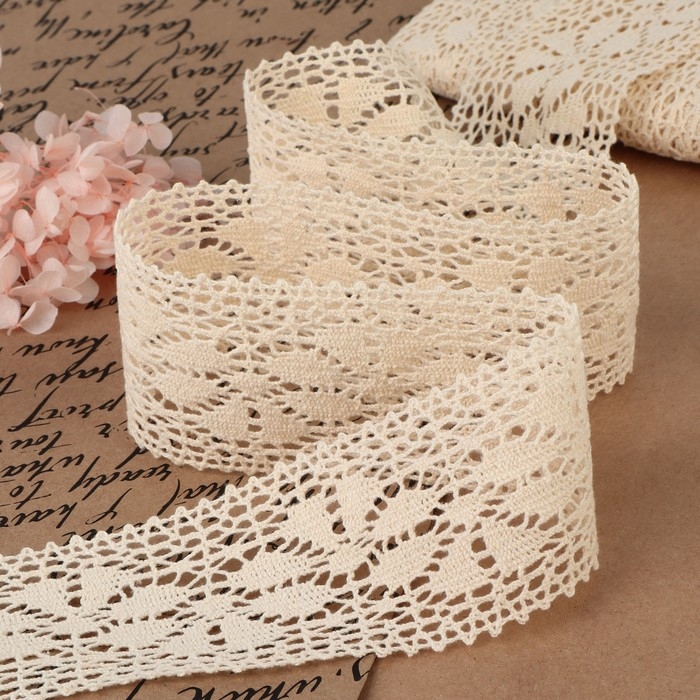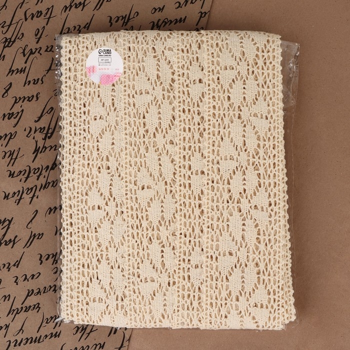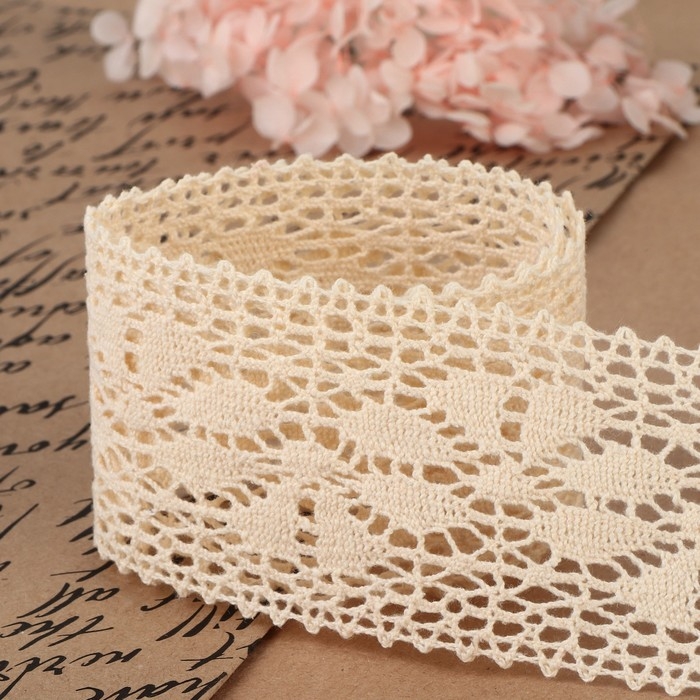 Кружево вязаное, 60 мм × 10 ± 1 м, цвет бежевый