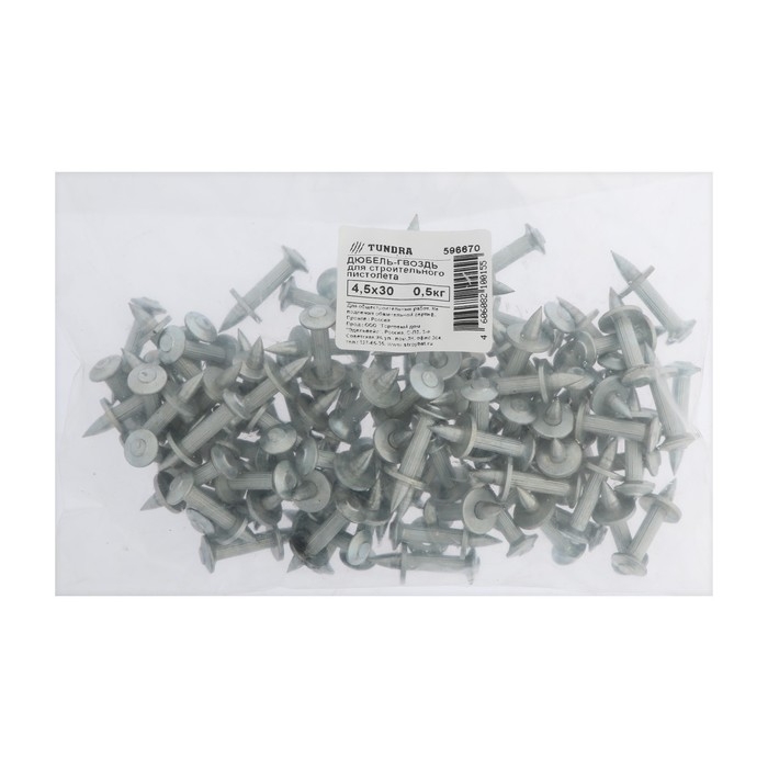 Дюбель-гвоздь "ТУНДРА", гвоздевой, для монтажного пистолета, оцинкованный, 4.5x30 мм, 0.5 кг