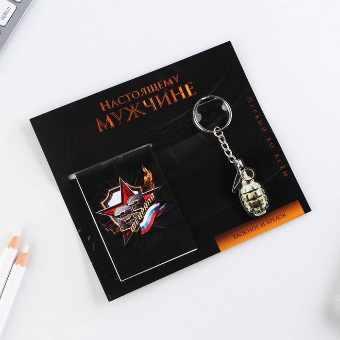 Подарочный набор: блокнот и деревянный брелок "Настоящему мужчне"
