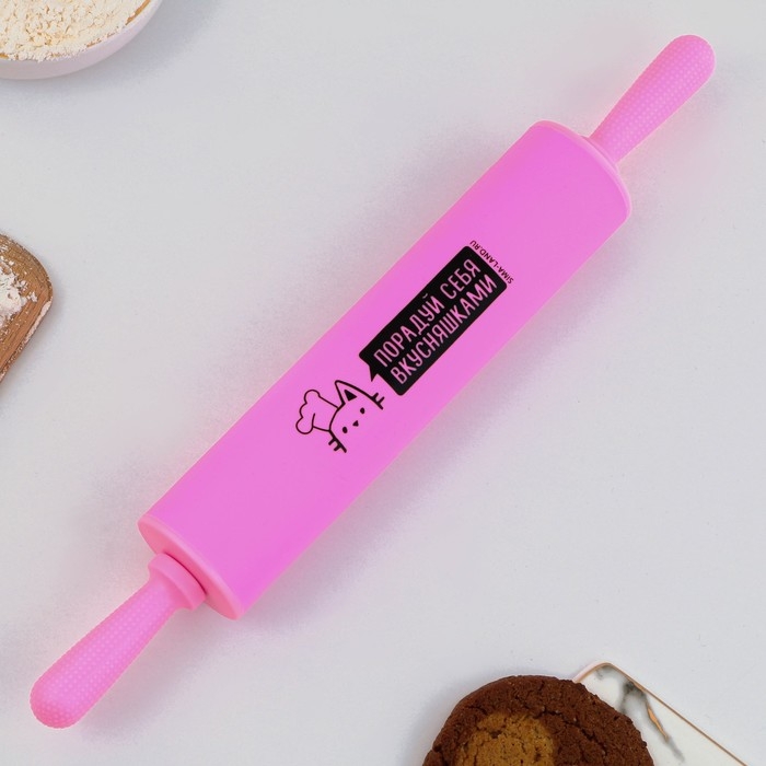 Скалка «Порадуй себя», 31 х 4.2 см, силикон, пластик, цвет розовый