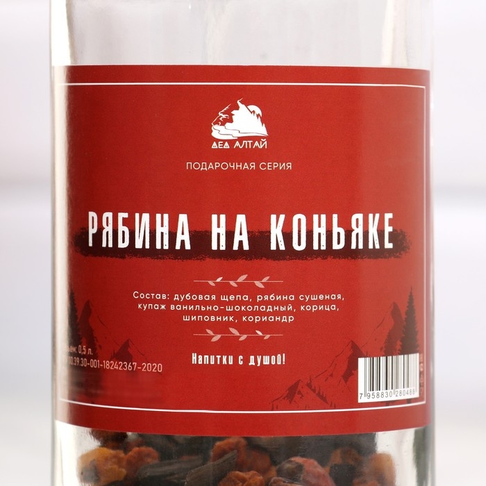 Набор из трав и специй для приготовления настойки "Рябина на коньяке" с бутылкой 0,5 л