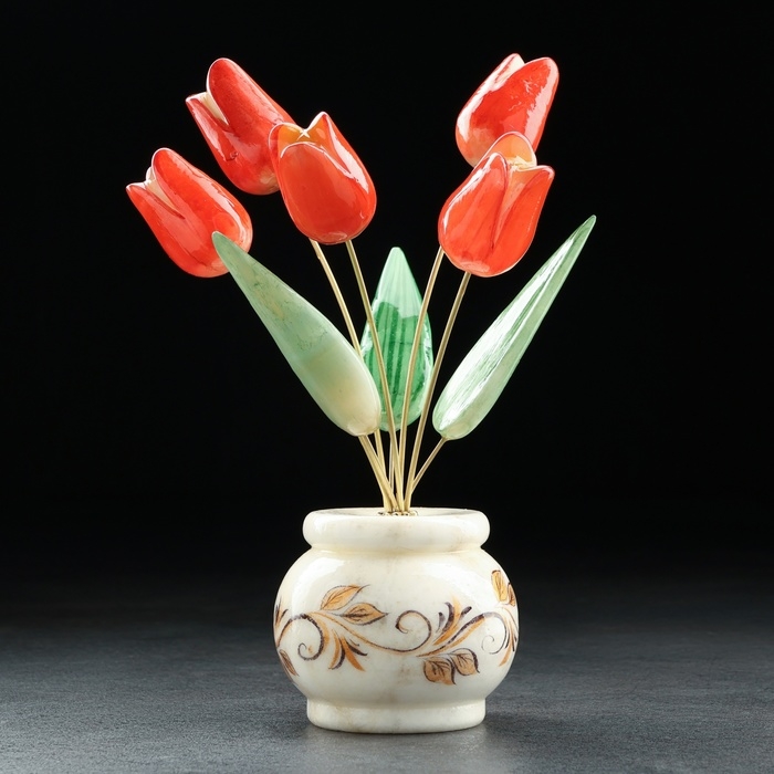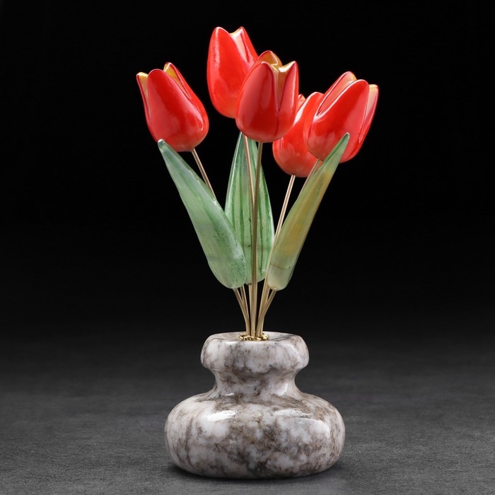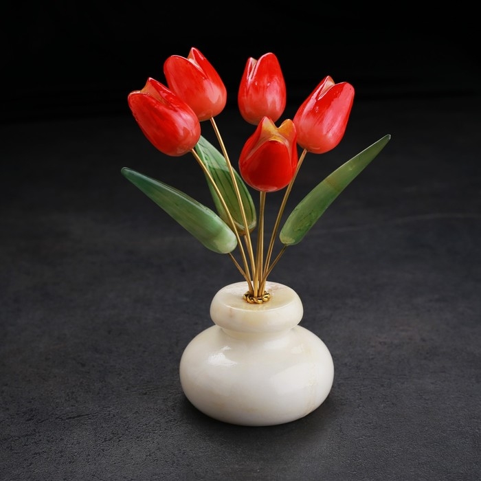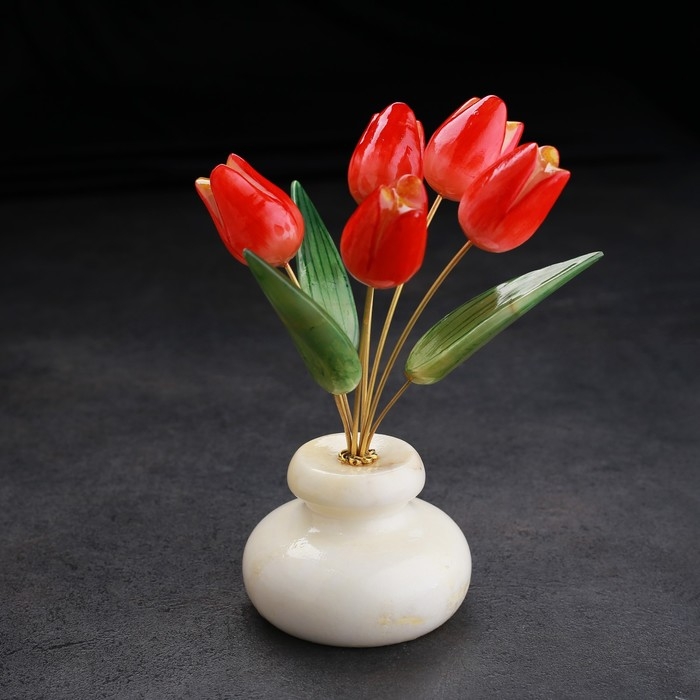 Сувенир "Тюльпаны в вазе", 5 цветков, красные, селенит, ангидрит