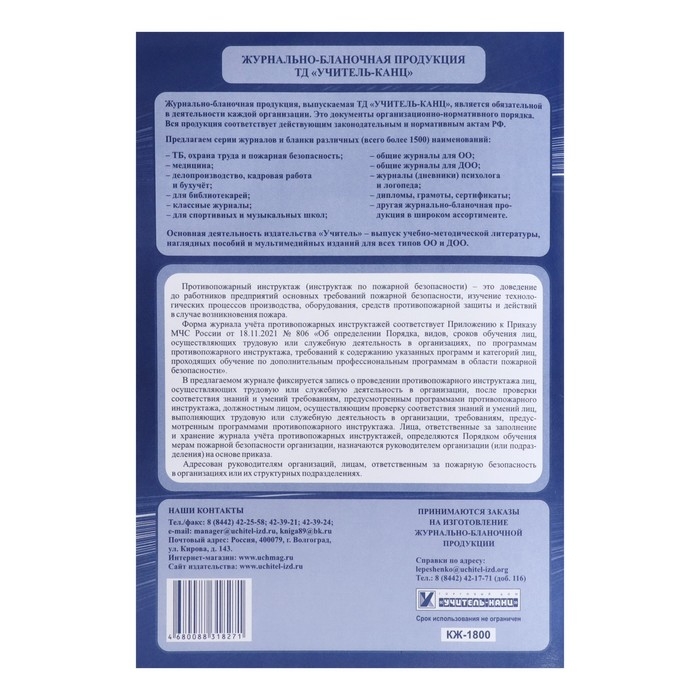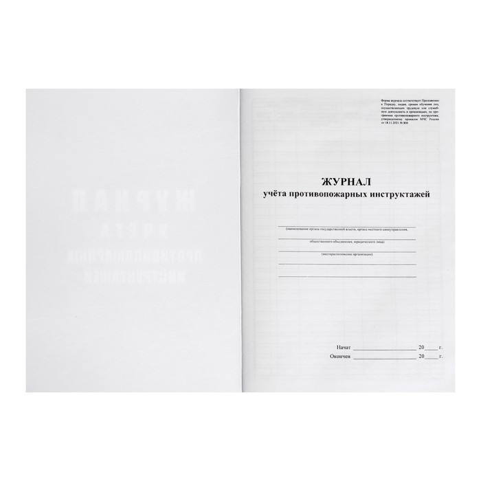 Журнал учета противопожарных инструктажей, А4 64 листа, блок писчая бумага 60 г/м², обложка офсетная бумага 160 г/м2