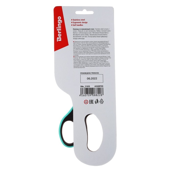 Ножницы 21см Berlingo "Easycut 350" ассорти, эргономичные ручки, мягкие вставки, европодвес