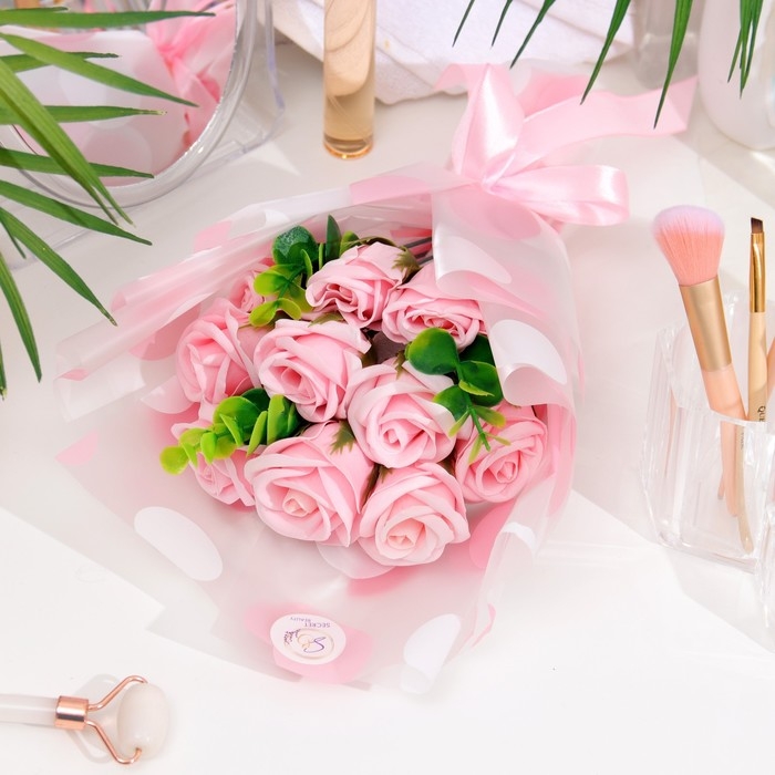 Благодаря точному повторению мелких деталей мыльные розы схожи с настоящими цветами. Композиция наполняет помещение тонким и ненавязчивым цветочным ароматом.