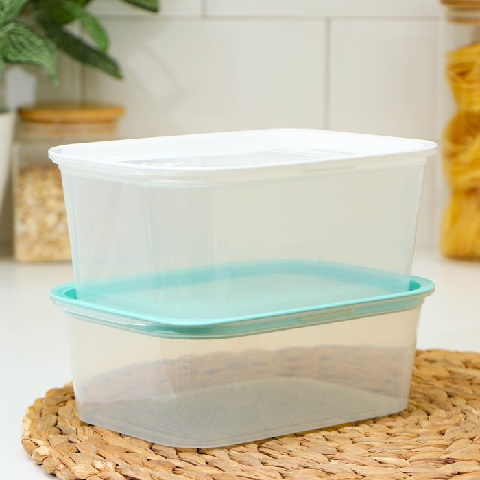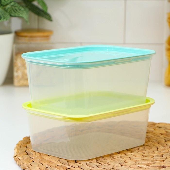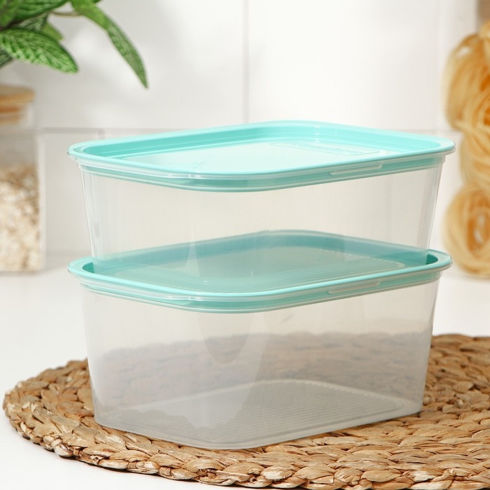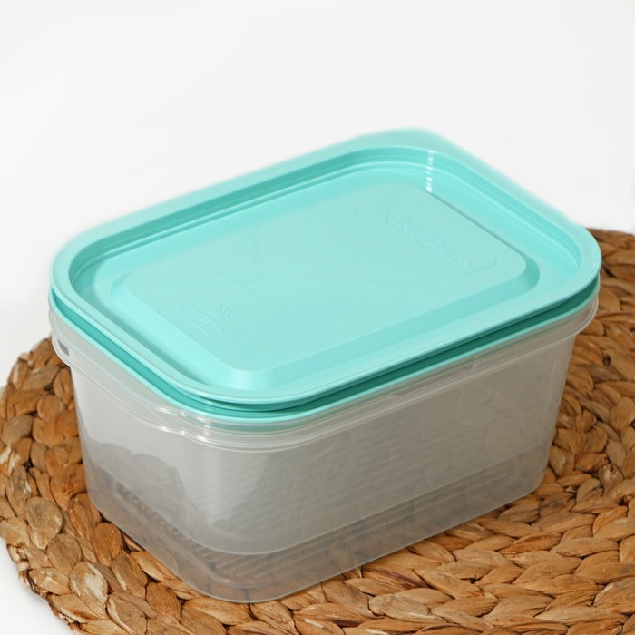 Набор контейнеров пищевых Доляна, 3 шт: 1 л, 18,5×12×7 см, прямоугольные, прозрачные, крышка зелёная