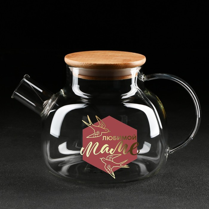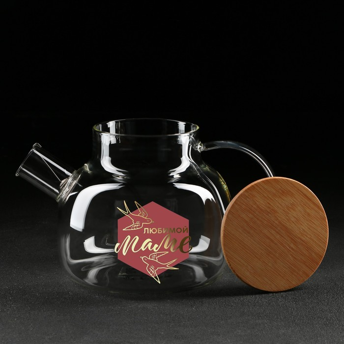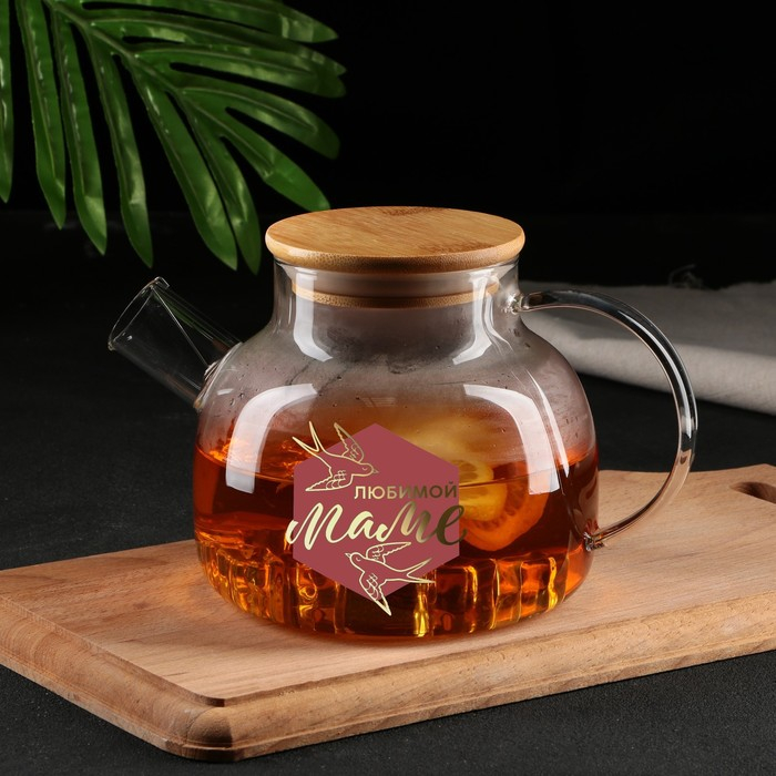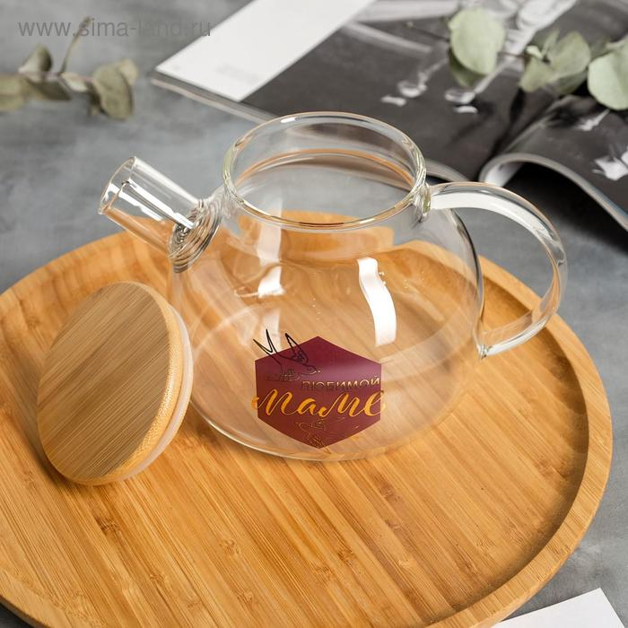 Чайник стеклянный заварочный с бамбуковой крышкой «Любимой маме», 1000 мл