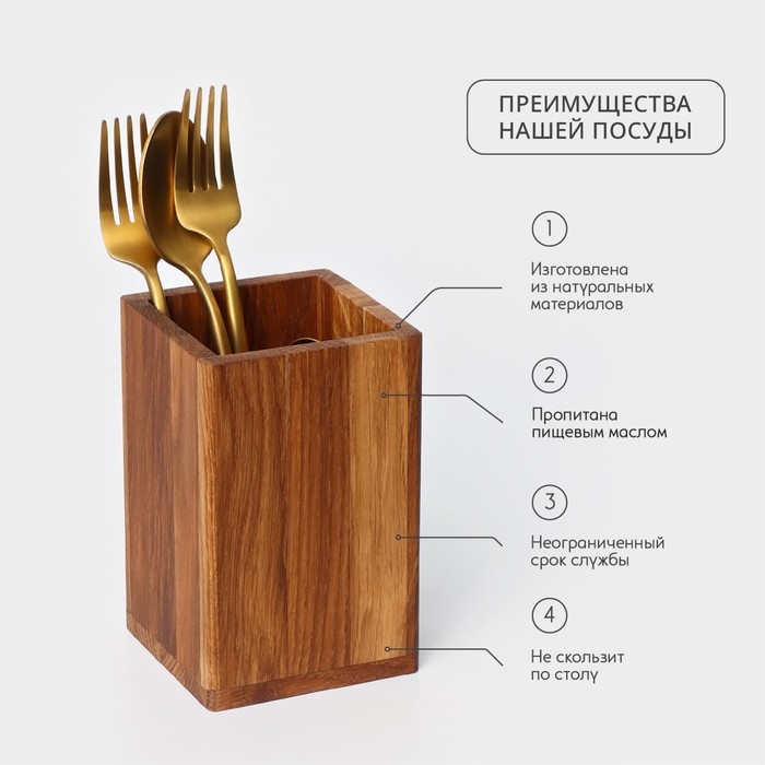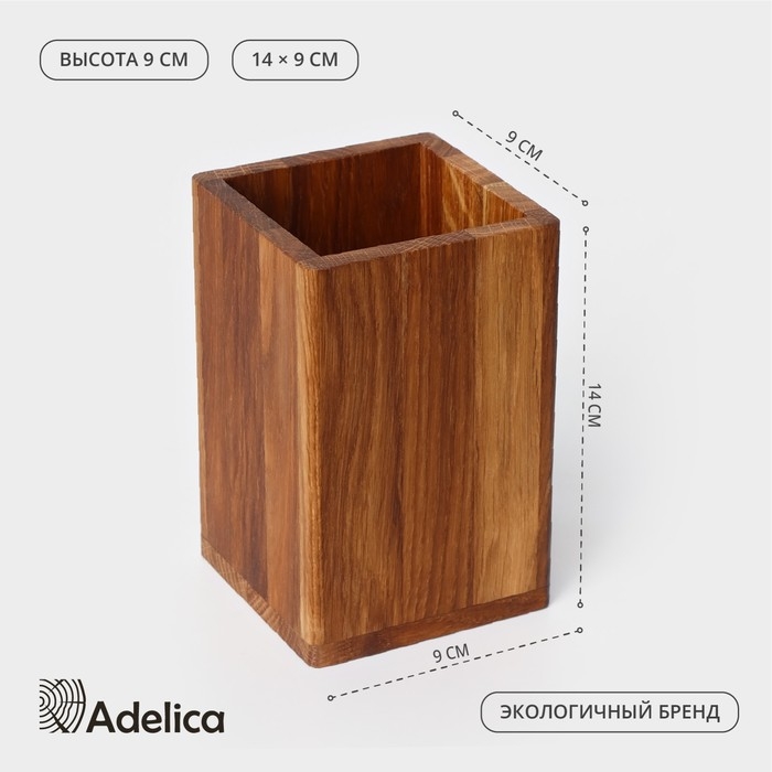 Подставка деревянная для столовых приборов Adelica, 9×9×14 см, дуб