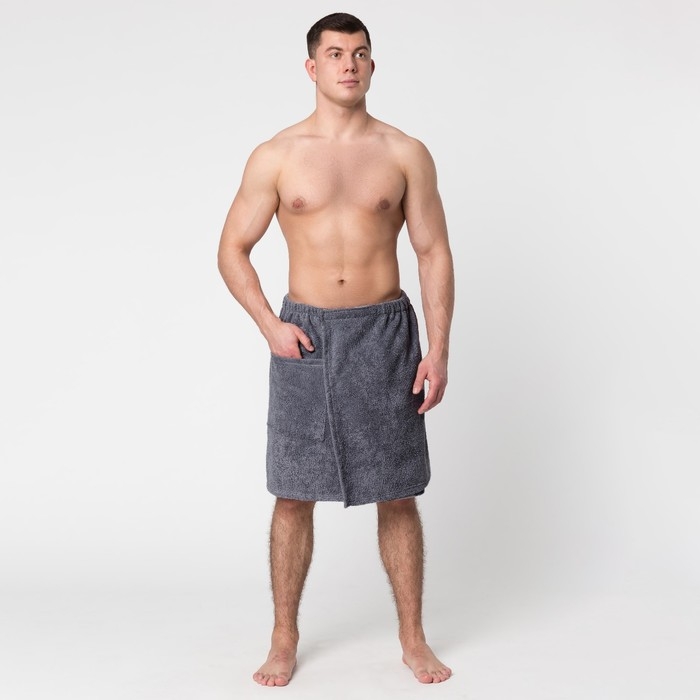Полотенце банное Экономь и Я "Килт с карманом" 50х150 см, цвет серый, 100% хлопок, 320 г/м2