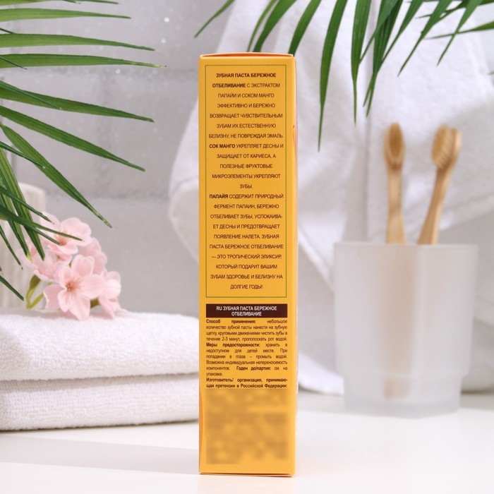 Основные характеристики зубной пасты "Бережное отбеливание Папайя" могут включать: