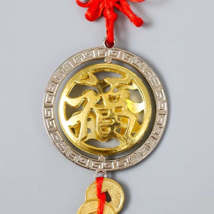 Подвеска металл "Иероглиф - Счастье" 3 монеты 16х4,8 см
