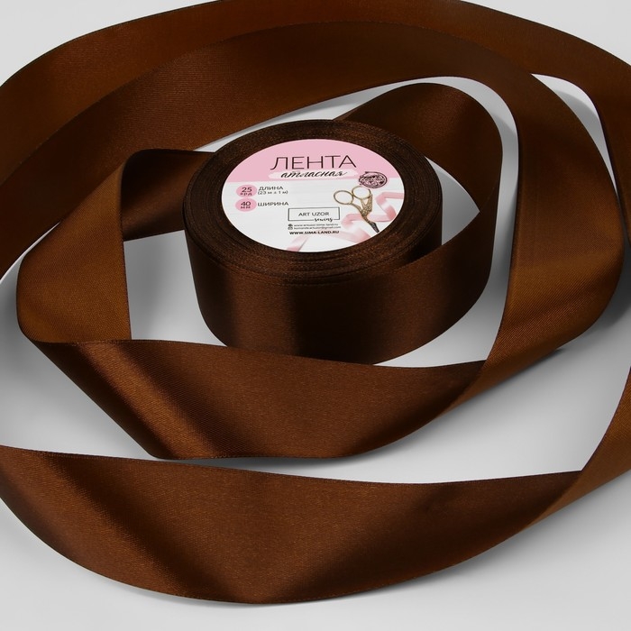Лента атласная, 40 мм × 23 ± 1 м, цвет горький шоколад №М496