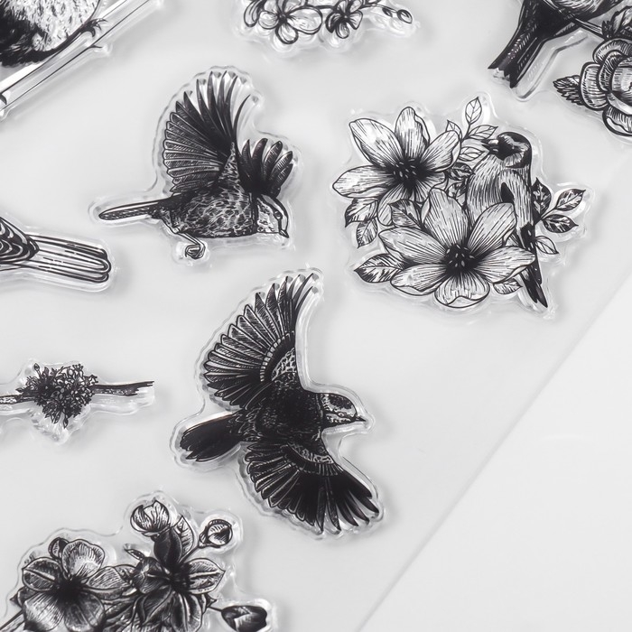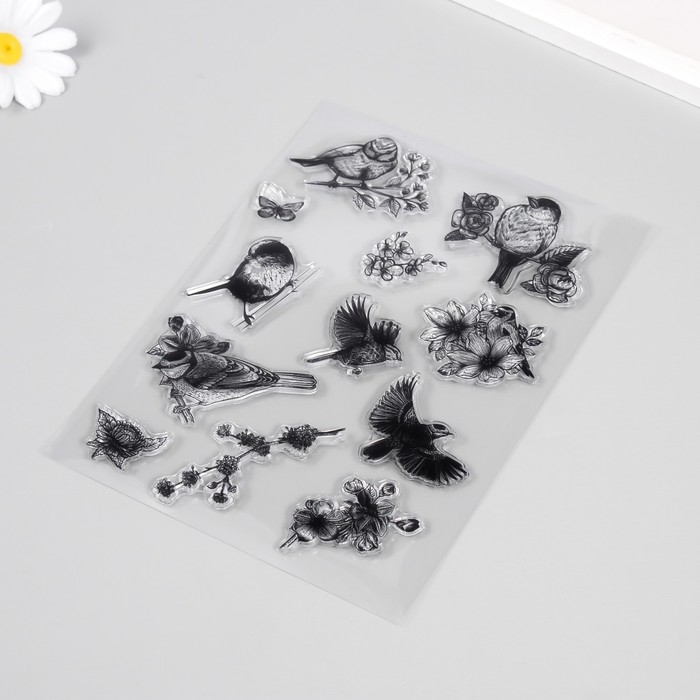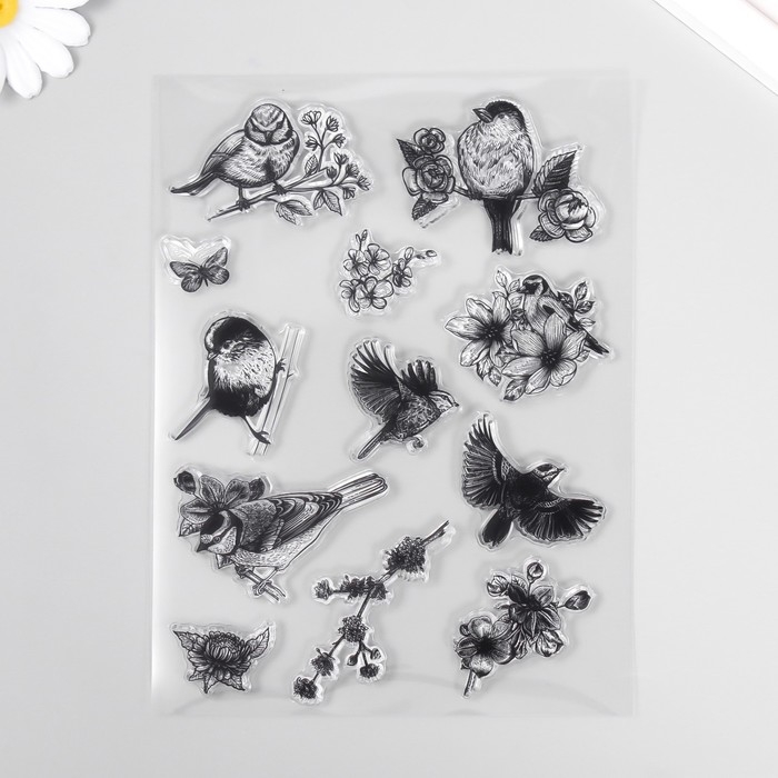 Штамп для творчества "Птички и цветы" 14,5х20х0,3 см
