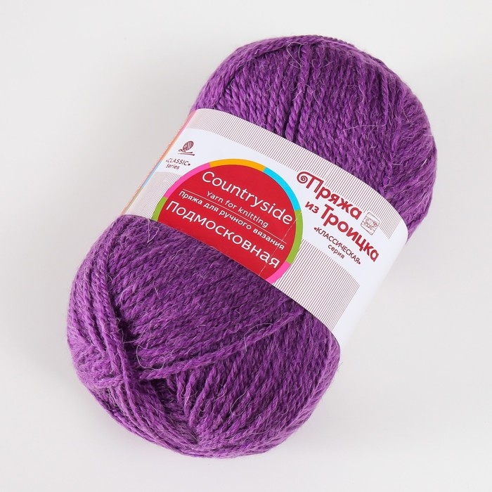 Пряжа "Подмосковная" 50% шерсть, 50% акрил 250м/100гр (183, пур-пур)