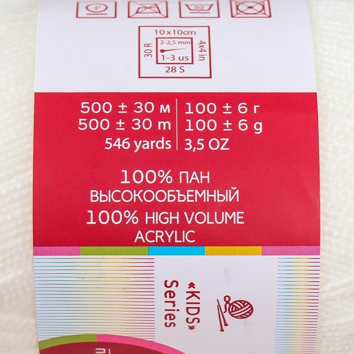 Пряжа "Пчелка" 100% акрил 500м/100гр (01,белый)