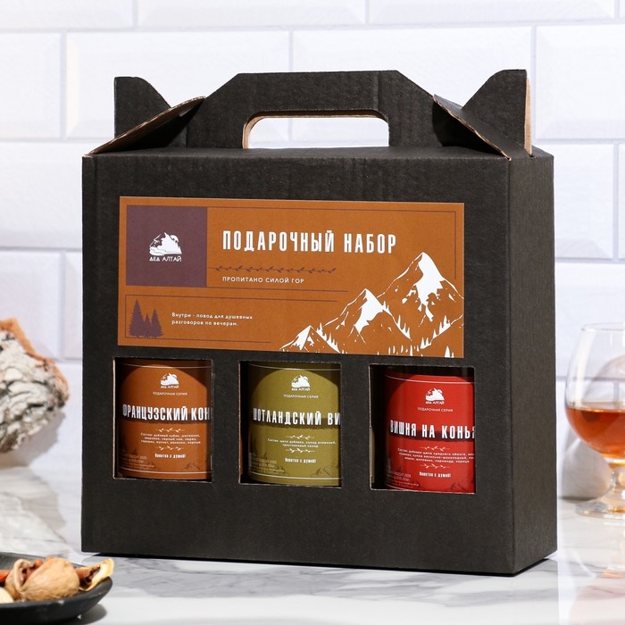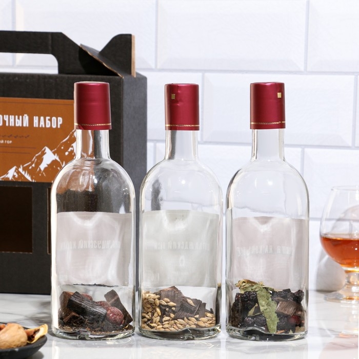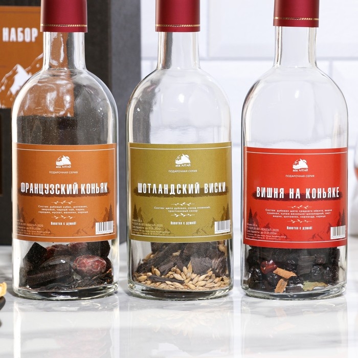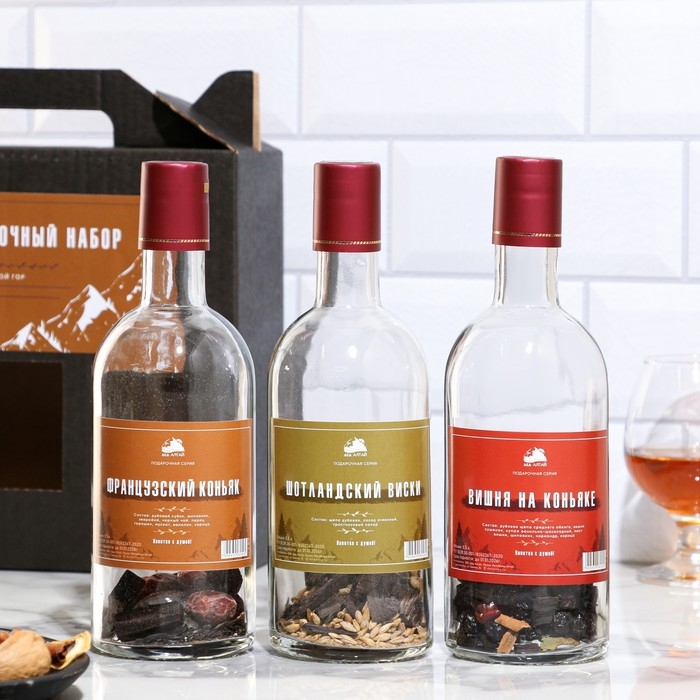 Подарочный набор бутылок по 0,5 литр"КОНЬЯЧНАЯ СЕРИЯ №2" (Фран коньяк, шотл виски, вишня на коньяке)