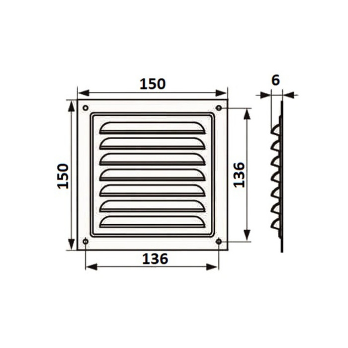 Решетка вентиляционная ZEIN Люкс ЛРР162В, 162 х 162 мм, с сеткой, разъемная, регулируемая