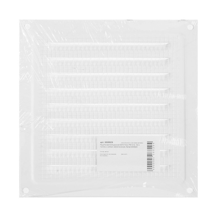 Решетка вентиляционная ZEIN Люкс РМ1515, 150 х 150 мм, с сеткой, металлическая, белая