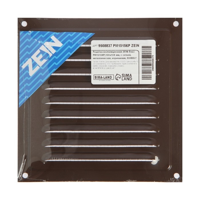 Решетка вентиляционная ZEIN Люкс РМ1515КР,150 х 150 мм, с сеткой, металлическая, коричневая