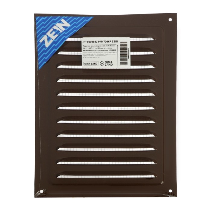 Решетка вентиляционная ZEIN Люкс РМ1724КР, 170 х 240 мм, с сеткой, металлическая, коричневая