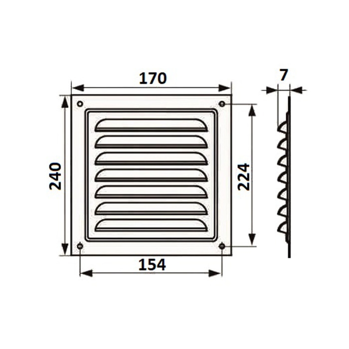 Решетка вентиляционная ZEIN Люкс ЛРР162В, 162 х 162 мм, с сеткой, разъемная, регулируемая