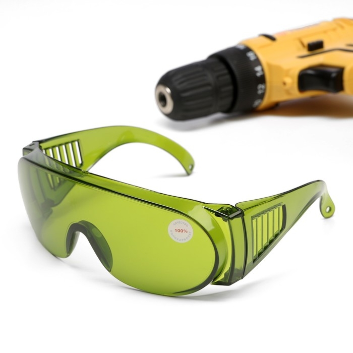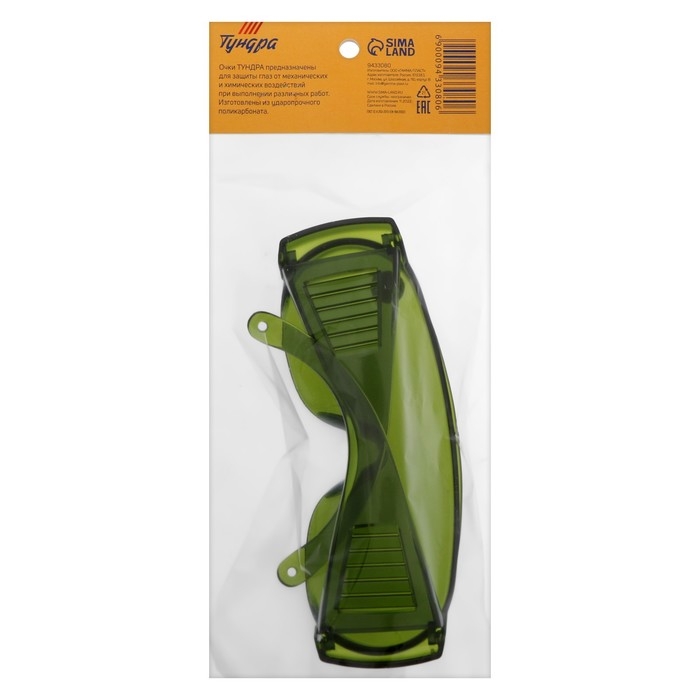 Очки защитные ТУНДРА, зеленые, открытого типа, ударопрочный материал