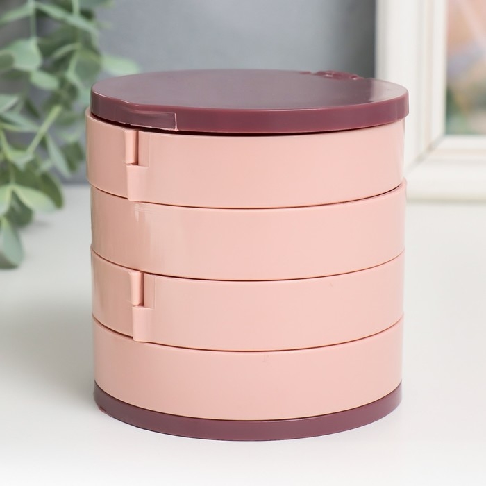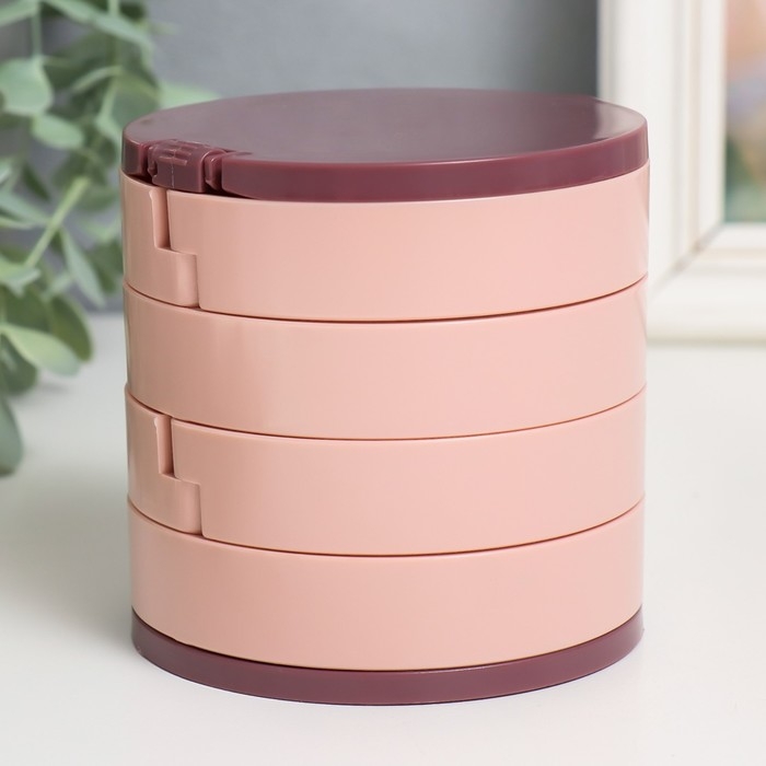 Шкатулка для украшений пластик, зеркало "Круглая. Четыре уровня" розовая 10х10х10 см