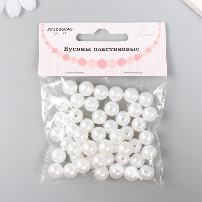 Набор бусин "Рукоделие" пластик, диаметр 10 мм, 25 гр, снежно-белый